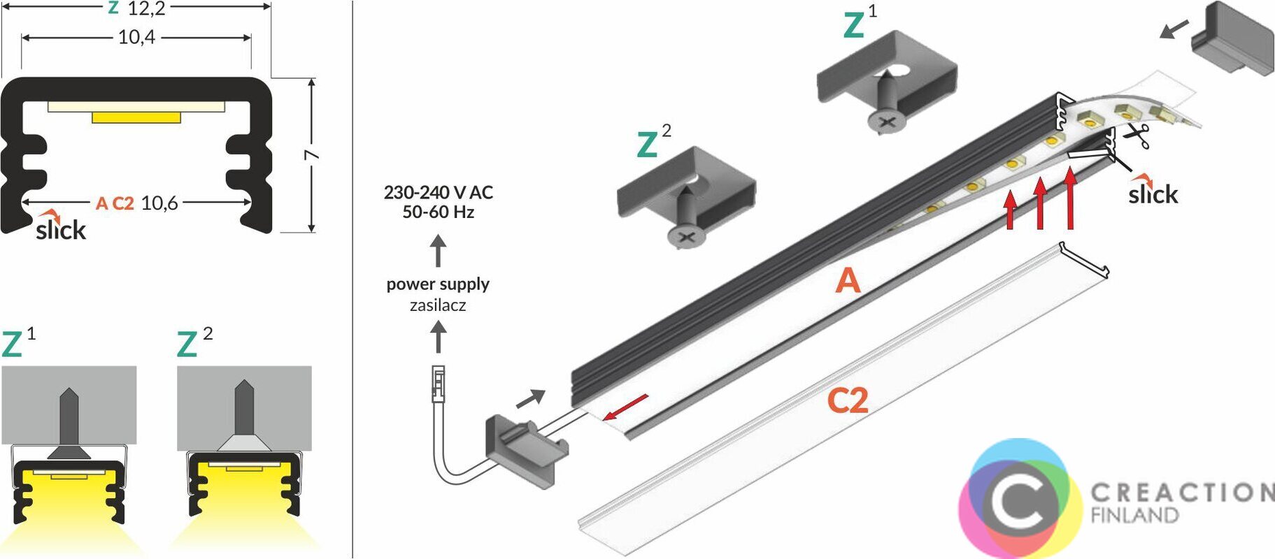 Ripustus- ja pinta-asenteiset LED-profiilit